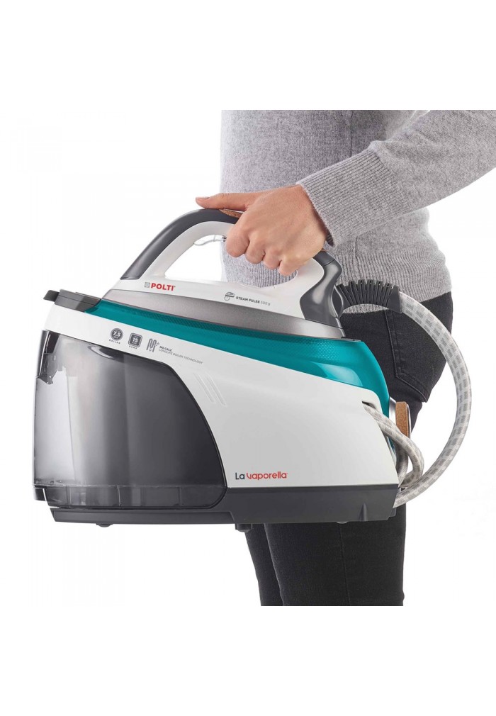 Το μοντέλο της σειράς La Vaporella, XT100C, με ισχυρό λέβητα απεριόριστης αυτονομίας 7,5Bar και 6 προγράμματα σας επιτρέπει να σιδερώσετε τέλεια κάθε είδος υφάσματος, ενώ η λειτουργία UNIVERSAL διευκολύνει το σιδέρωμα όλων των ρούχων χωρίς αλλαγή ρυθμίσεων. Διαθέτει ισχυρό μπόιλερ τεχνολογίας "NO CALC LONGLIFE", τεχνολογία που επιτρέπει την πρόληψη των αρνητικών επιπτώσεων από ασβεστοποίηση εξαιτίας αλάτων, δίνοντας στο μπόιλερ μεγαλύτερη διάρκεια ζωής χωρίς συνεχή συντήρηση. Το ειδικό κράμα αλουμινίου εξουδετερώνει τις επιδράσεις των αλάτων του νερού της βρύσης, ενώ το φίλτρο του μπόιλερ μπλοκάρει τη δράση ακόμη και πολύ λεπτών σωματιδίων εντός του. Διαθέτει λειτουργία αυτόματης απενεργοποίησης. Επιπλέον, η αντικολλητική του πλάκα αλουμινίου με διπλή κεραμική επίστρωση διαθέτει την πατενταρισμένη τεχνολογία της Καμπύλης Ροής πολλαπλής κατεύθυνσης FLUID CURVE 360°, ώστε με ένα μόνο πέρασμα να σιδερώνει τέλεια. Οι στρογγυλεμένες άκρες της πλάκας επιτρέπουν ομαλό σιδέρωμα, περνώντας χωρίς δυσκολία, πιθανά εμπόδια, όπως τσέπες και κουμπιά.