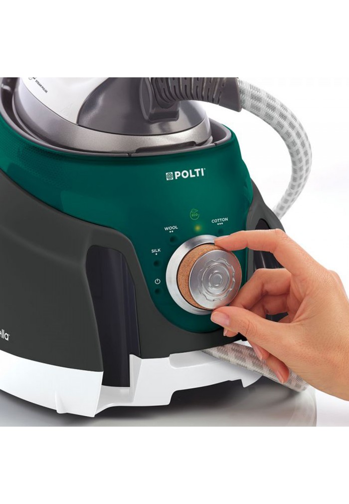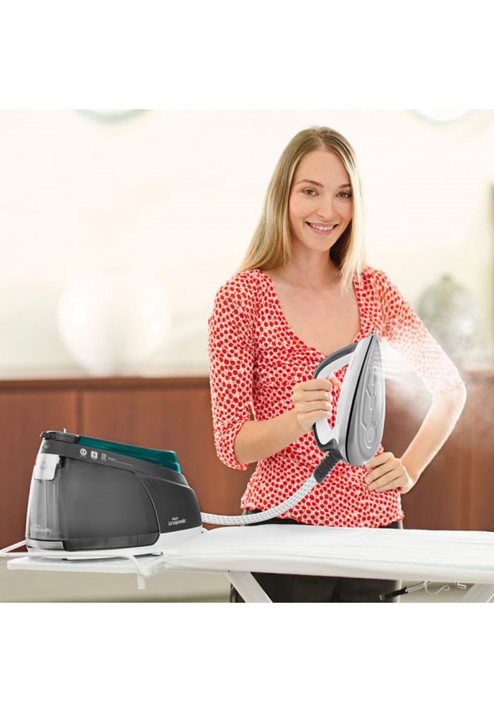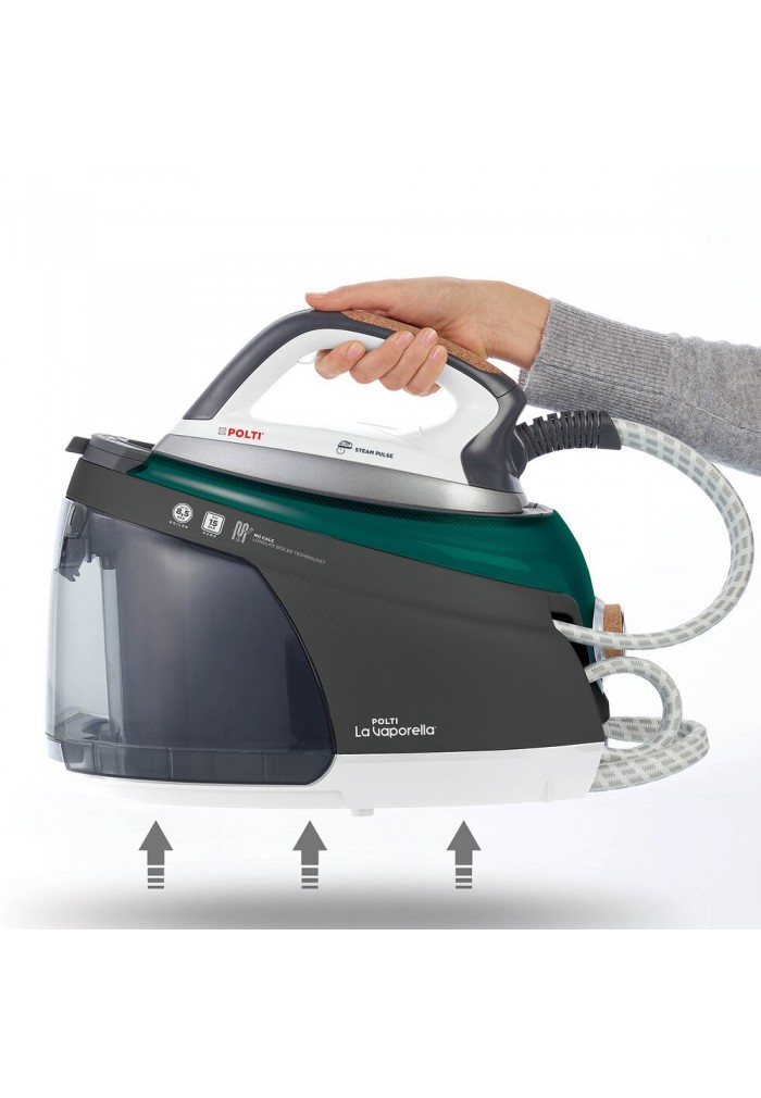 Το μοντέλο της σειράς La Vaporella, XT120C, με ισχυρό λέβητα απεριόριστης αυτονομίας 8,5Bar και 6 προγράμματα σας επιτρέπει να σιδερώσετε τέλεια κάθε είδος υφάσματος, ενώ η λειτουργία ECO διευκολύνει το σιδέρωμα όλων των ρούχων σας με μειωμένη κατανάλωση σε ρεύμα και νερό. Διαθέτει ισχυρό μπόιλερ τεχνολογίας "NO CALC LONGLIFE", τεχνολογία που επιτρέπει την πρόληψη των αρνητικών επιπτώσεων από ασβεστοποίηση εξαιτίας αλάτων, δίνοντας στο μπόιλερ μεγαλύτερη διάρκεια ζωής χωρίς συνεχή συντήρηση. Το ειδικό κράμα αλουμινίου εξουδετερώνει τις επιδράσεις των αλάτων του νερού της βρύσης, ενώ το φίλτρο του μπόιλερ μπλοκάρει τη δράση ακόμη και πολύ λεπτών σωματιδίων εντός του. Διαθέτει λειτουργία αυτόματης απενεργοποίησης. Επιπλέον, η αντικολλητική του πλάκα αλουμινίου με διπλή κεραμική επίστρωση διαθέτει την πατενταρισμένη τεχνολογία της Καμπύλης Ροής πολλαπλής κατεύθυνσης FLUID CURVE 360°, ώστε με ένα μόνο πέρασμα να σιδερώνει τέλεια. Οι στρογγυλεμένες άκρες της πλάκας επιτρέπουν ομαλό σιδέρωμα, περνώντας χωρίς δυσκολία, πιθανά εμπόδια, όπως τσέπες και κουμπιά.