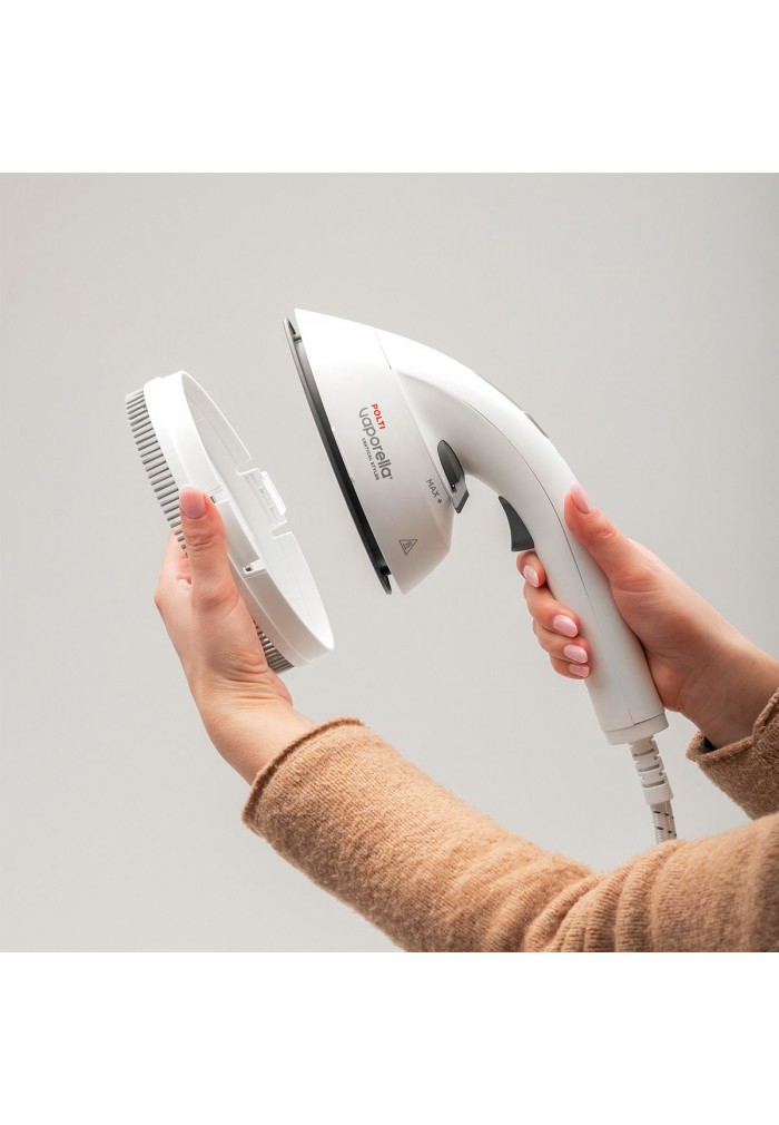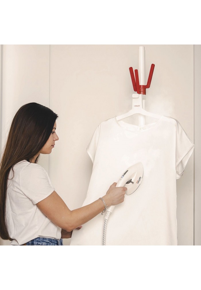 Το σύστημα σιδερώματος Vertical Styler GSF80R είναι μια κατακόρυφη σιδερώστρα με ελαφρύ ενσωματωμένο, σίδερο ατμού. Είναι έτοιμο σε μισό λεπτό, ιδανικό για ξεκούραστο και εύκολο σιδέρωμα, για γρήγορη απολύμανση των ρούχων αλλά και για άμεση εξάλειψη οσμών ακόμα και από τα πιο χοντρά υφάσματα. Η ρυθμιζόμενη κρεμάστρα ύψους, πολλαπλών λειτουργιών, σας επιτρέπει να χειρίζεστε άνετα διαφορετικούς τύπους ενδυμάτων και υφασμάτων. Η βοηθητική βούρτσα ευνοεί επίσης τη διείσδυση του ατμού ακόμα και στα βαρύτερα υφάσματα. Το Polti Vaporella Vertical Styler GSF80R είναι πρακτικό, ευέλικτο και αποτελεσματικό επιδαπέδιο κάθετο σίδερο: